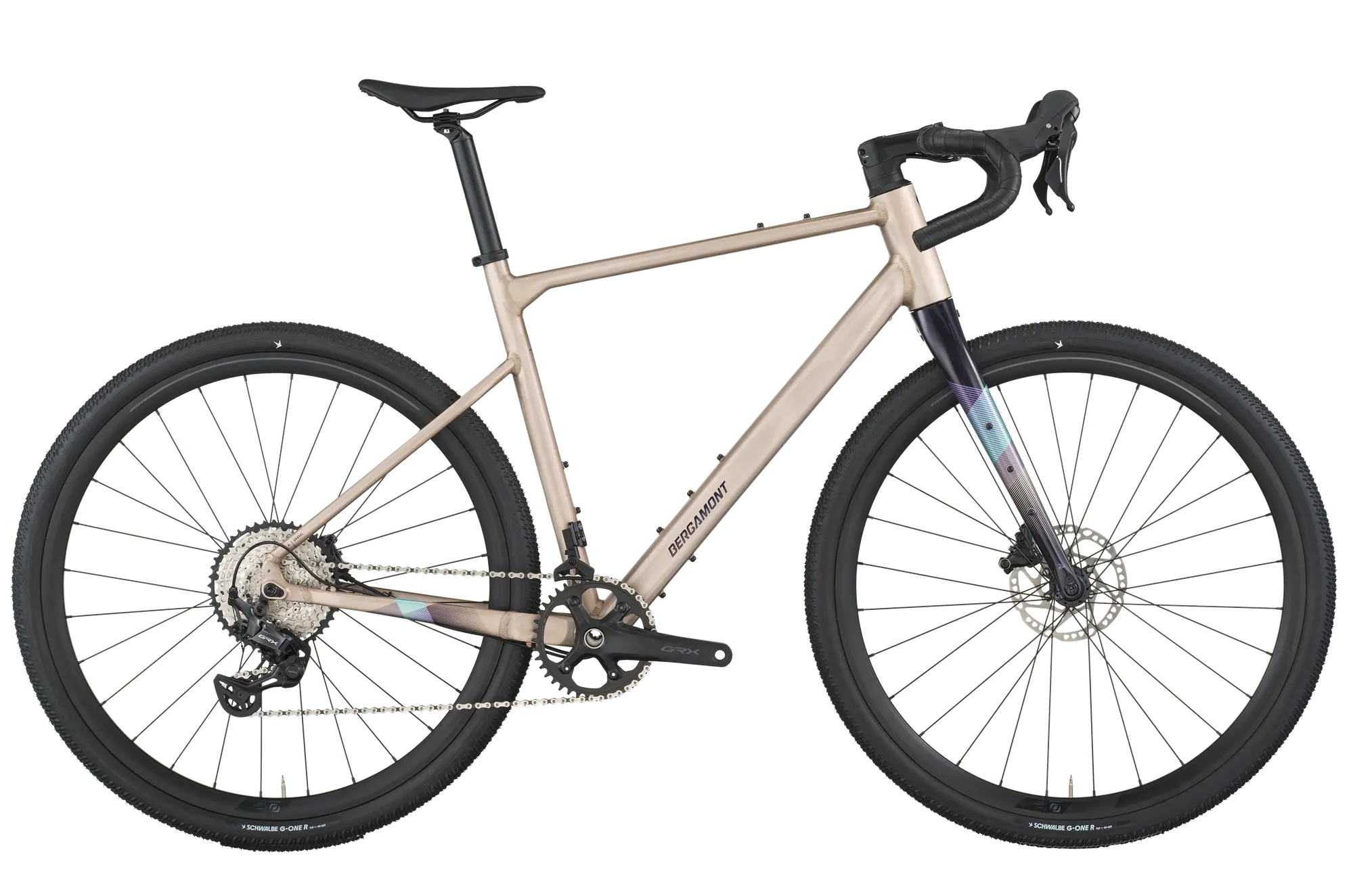 Rahmen: 28″, ultra lite AL-6061 Rohrsatz Gabel: BGM Allroad Carbon, Carbon Steuerrohr, 12x100 mm Achse Schaltwerk: Shimano GRX, RD-RX822, Shadow Plus Schalthebel: Shimano GRX, ST-RX610, 1x12-fach, road STI-Schalthebel Kurbelsatz: Shimano GRX, FC-RX610, 40t Innenlager: Shimano Hollowtech II, BSA Kette: KMC X12 Kassette: Shimano SLX, CS-M7100, 10-45t Bremshebel vorne: Shimano GRX, BL-RX610 Bremshebel hinten: Shimano GRX, ST-RX610 Bremsen: Shimano GRX, BR-RX410, hydraulische Scheibenbremse Bremsscheibe: Shimano SM-RT64, 160 mm Lenker: Syncros Gravl Vorbau: Syncros -6° Sattelstütze: Syncros Duncan 2.5 Sattel: Syncros Tofino 2.5 Steuersatz: Acros ZS56, A-Headset, semi-integriert, Tapered Vorderradnabe: Formula CL-712, Centerlock, Disc, 12x100 mm axle Hinterradnabe: Formula CL-142M, Centerlock, disc, 12x142 mm Achse Speichen: Edelstahl, schwarz Felgen: Syncros DB-S300R, Disc Bereifung: Schwalbe G-One R, Perfomance, RaceGuard, TLR, Addix, 45-622 Schlauch: Kenda SV28 Pedale: ohne Gewicht in Kg (ca.): 11,1 Farbe: flaky beige Rahmengrößen: S/M/L/XL/XXL Griffe: Syncros RC Bartape Max. Systemgewicht: 130,0 kg (Das zulässige Gesamtgewicht umfasst das Fahrrad inkl. Fahrer/in, Bekleidung und Gepäck) Welche Rahmengröße benötige ich? Die passende Rahmengröße können Sie ganz bequem auf der Produktseite des Herstellers unter folgendem Link berechnen: BERGAMONT Grandurance 20. Benutzen Sie dort die Schaltfläche „FINDE DEINE PASSENDE GRÖSSE“. Angebot gilt, solange der Vorrat reicht.