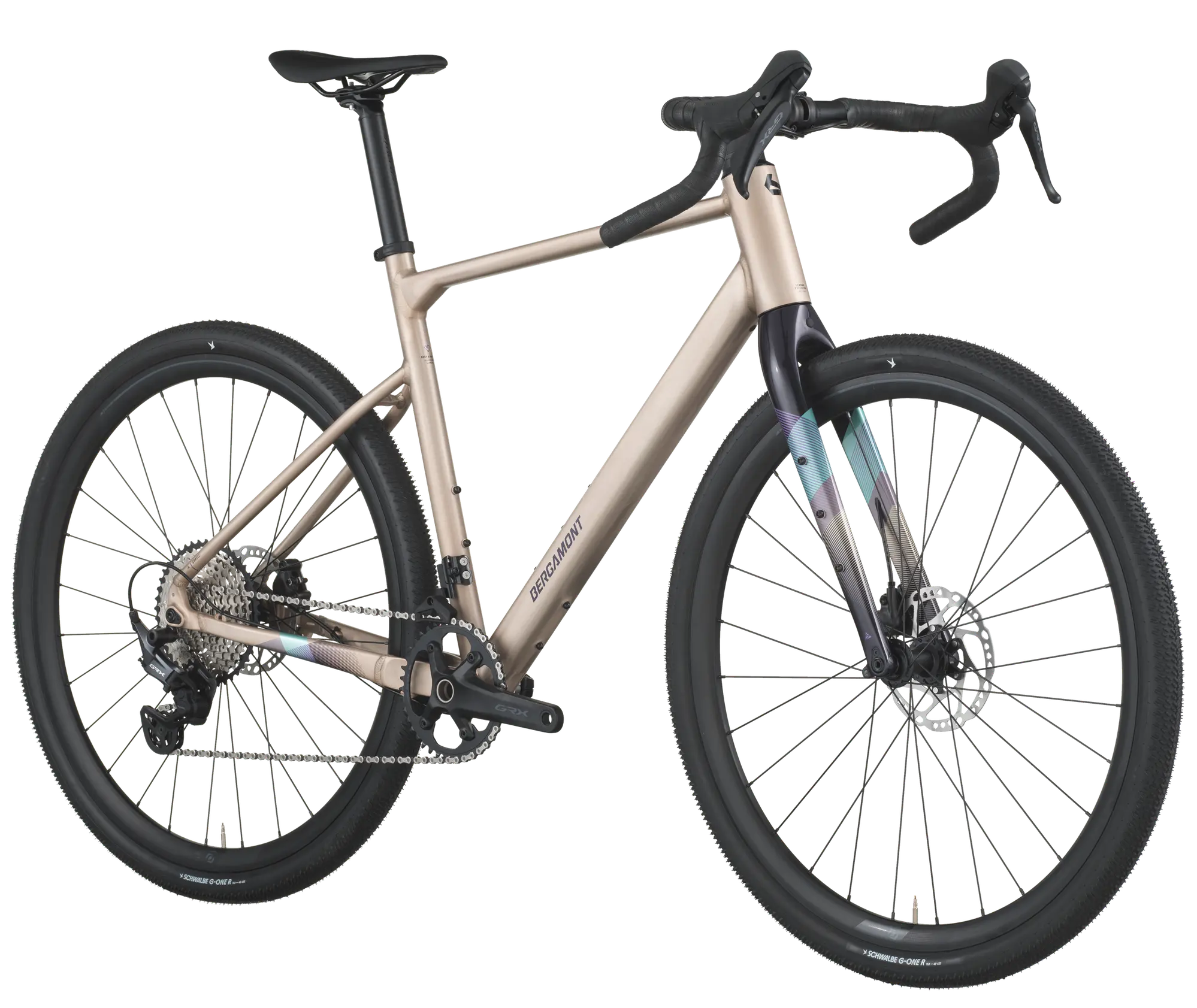 Gravel vom Feinsten: Eine durchdachte, multifunktionale Aluminium-Rahmenplattform mit Kohlefasergabel und ausgewogener All-Road-Geometrie, maximaler Reifenfreiheit, unzähligen Befestigungspunkten für Zubehör und einem zukunftsträchtigen Design. Ein echter Hingucker mit hochwertigen Shimano GRX 1x12-fach Gravel-Komponenten.