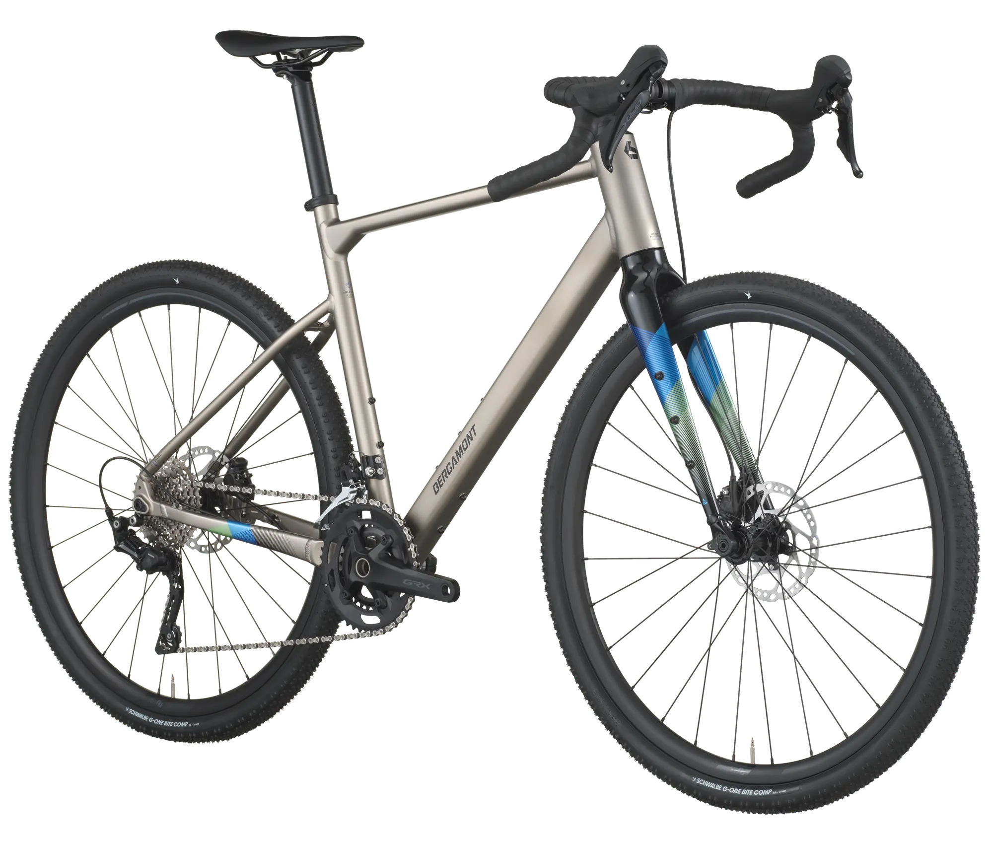 Rahmen: 28″, ultra lite AL-6061 Rohrsatz Gabel: Grandurance Alloy, 12x100 mm Achse, Schutzblechaufnahme Schaltwerk: Shimano GRX, RD-RX400, Shadow Plus Schalthebel: Shimano GRX, ST-RX400, 2x10-fach, road STI Kurbelsatz:Shimano GRX, FC-RX600-10, 46/30t Innenlager: Shimano Hollowtech II, BSA Kette: KMC X10 Kassette: Shimano CS-HG50-10, 11-36t Bremshebel vorne: Shimano GRX, BL-RX610 Bremshebel: Shimano GRX, ST-RX400 Bremsen: Shimano GRX, BR-RX410, hydraulische Scheibenbremse Bremsscheibe: Shimano SM-RT64, 160 mm Lenker: Syncros Gravel Vorbau: Syncros -6° Sattelstütze: Syncros Duncan 2.5 Sattel: Syncros Tofino 2.5 Steuersatz: Acros ZS56, A-Headset, semi-integriert, Tapered Vorderradnabe: Formula CL-712, Centerlock, Disc, 12x100 mm axle Hinterradnabe: Formula RXC-400, Centerlock, disc, 12x142 mm Achse Speichen: Edelstahl, schwarz Felgen: Syncros DB-T260, Disc Bereifung: Schwalbe G-One Bite Comp, K-Guard, TLR, Addix, 45-622 Schlauch: Kenda SV28 Pedale: ohne Gewicht in Kg (ca.): 11,6 Farbe: warm silver Rahmengrößen: S/M/L/XL/XXL Griffe: Syncros RC Bartape Max. Systemgewicht: 130,0 kg (Das zulässige Gesamtgewicht umfasst das Fahrrad inkl. Fahrer/in, Bekleidung und Gepäck) Welche Rahmengröße benötige ich? Die passende Rahmengröße können Sie ganz bequem auf der Produktseite des Herstellers unter folgendem Link berechnen: BERGAMONT Grandurance 30. Benutzen Sie dort die Schaltfläche „FINDE DEINE PASSENDE GRÖSSE“. Angebot gilt, solange der Vorrat reicht.