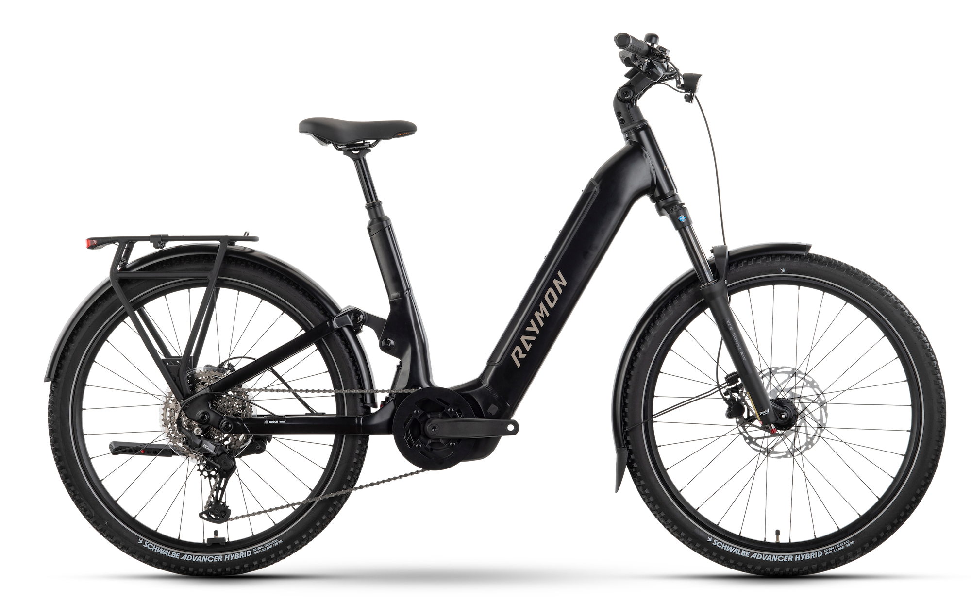 Rahmen: 27,5" Aluminium 6061, herausnehmbarer Akku, Boost, 120 mm Gabel: SR Suntour XCR34X Boost 2CR, Luftfedergabel, 120 mm, tapered Laufradgröße: 27,5"/584mm Dämpfer: SR Suntour EdgeX R, air, 190x45 mm Motor: Bosch Performance Line PX, 250/750 W, 90 Nm Akku: Bosch PowerTube 800 Wh, 36 V Bedieneinheit/Display: Bosch Kiox 300 mit LED Remote Ladegerät: Bosch Charger, 4 A Schaltwerk: Shimano Cues, RD-U6000, Shadow, 11-S Schalthebel: Shimano Cues, SL-U6000, Rapidfire Plus Kette: Shimano CN-LG500 Kurbelarm: Raymon FC02, ISIS, Aluminium geschmiedet Zahnkranz: Shimano CS-LG400, 11-50T Kettenblatt: Raymon, Narrow Wide, 40T Bremsen: Tektro HD-M3120 2-Kolben, hydr. Scheibenbremse mit 203/180 mm TR52 Scheiben Vorderrad: Raymon VR24/DT210, Center Lock, 15x110 industriegelagert Hinterrad: Raymon VR24/DT210, Center Lock, 12x148 mm indurstriegelagert ReifenSchwalbe Advancer Hybrid, Reflex, 60-584, 27.5x2.35 Griffe: Raymon MTB, lock on Lenker: Raymon Riser 31,8 mm, Sweep: 15 °, Rise: 30 mm Sattelstütze: Raymon, 34,9 mm, Dropper Post Sattel: Selle Royal Explora Plus Seitenständer: Ursus INTEGRALE ANS, IC44 einstellbar STVZO konform: ja Anhängerfreigabe: Ja zul. Fahrzeuggesamtgewicht: 150 kg (Das zulässige Gesamtgewicht umfasst das Fahrrad inkl. Fahrer/in, Bekleidung und Gepäck). Weitere Infos auf der Herstellersiete unter folgendem Link: RAYMON Tavano CompAngebot gilt, solange der Vorrat reicht.